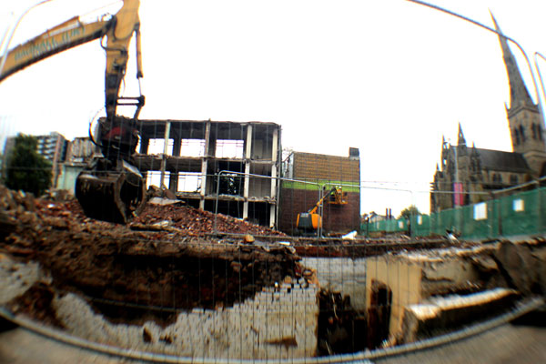 I mention this because the numbering of the bricks has halted (at 3,000) due to the demolition being on hold for now. As of yesterday it’s still uncertain when it will begin again. In order to complete the demolition of the site, scaffolding needs to be erected around the remaining buildings. There is however concern that the demolition works are going to compromise the telecommunications system/centre that is underground (see Jimmy’s article) and so works have temporarily stopped on the site.