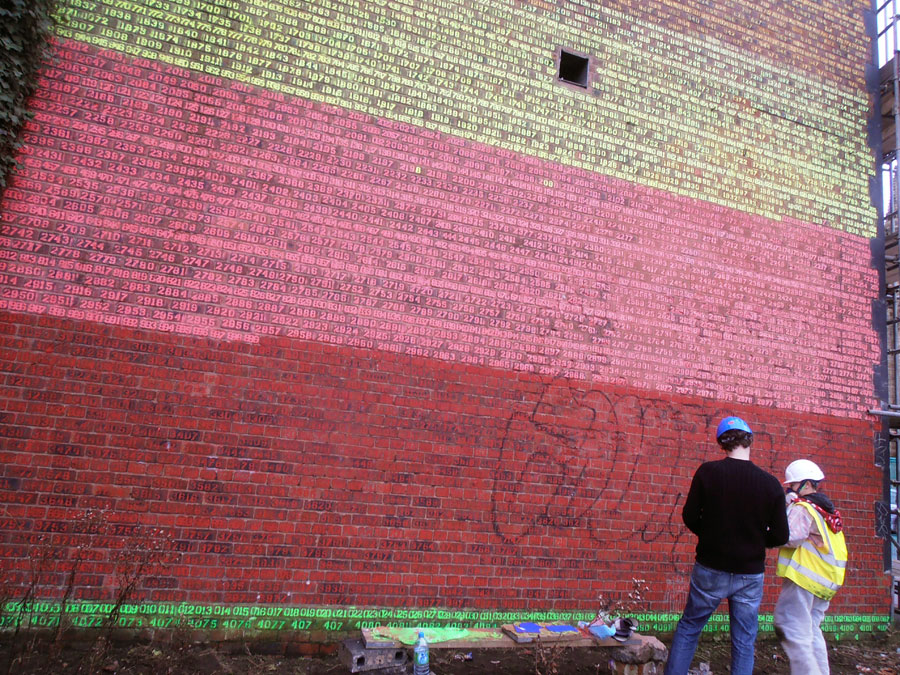Wow… feeling completely overwhelmed – after 5 months of limbo, panic and frustration I get a call Wed 10am last week from the council saying it’s happening NOW – scaffolding being erected as we speak. Four days to sort everything before the demolition contractors get back on site… Dropped everything- and by Sunday had finished numbering the bricks- 4,168. Monday arrives and things are (thankfully) slightly behind, scaffolders still to finish. Site manager estimates The Wall will start coming down starting 3rd March, after demolition of the remnants of the building adjacent. Further complications on Thursday and now there’s at least 3 weeks more before The Wall comes down- hallelujah. I go for a meeting at Islington Mill and by the time I get back, it’s changed- order of the demolition rearranged so that the Wall is back on for Monday or Tuesday. No more reprieve but fine. Friday rolls around- everything’s pretty calm, they’ve even managed to save me the bit of ornamental molding from the top of the Bank Theatre. Amazing. I keep taking photos and suddenly John says- we’re taking it down now. W T F… So not ready for this and on top of it my camera is on the blink and phone/video camera decides it’s about to die. F**k f**k f**k f**k f**k. Do I have time to run and get my 16mm? No… and a horrendous 15 minutes ensues hovering outside the fence shaking my beyond moody camera to get it working thinking this cannot be happening- the demolition of The Wall, two years of my life, I can’t even.. this cannot be for real. The crane hovers above the roof, John comes back over and says they’ll take an early dinner i.e. now and then start on The Wall. I’ve got an hour. And with dying phone send out an SOS…. Still making sense of it all but there’s one thing I know– THANK YOU Bill Campbell, Maurice Carlin, Jo Atkins, Kim Irwin, Paddy Shine, Chris Haslam, Alex Macarte, David Williams, Mariel Osborn, Alex Hindle for coming to the rescue– I’d have totally crumbled without you all! Much more to come in the next days/weeks/months… but for now, if anyone fancies seeing what’s left of The Wall and the Old Bank Theatre- demolition resumes Monday 7.30am….