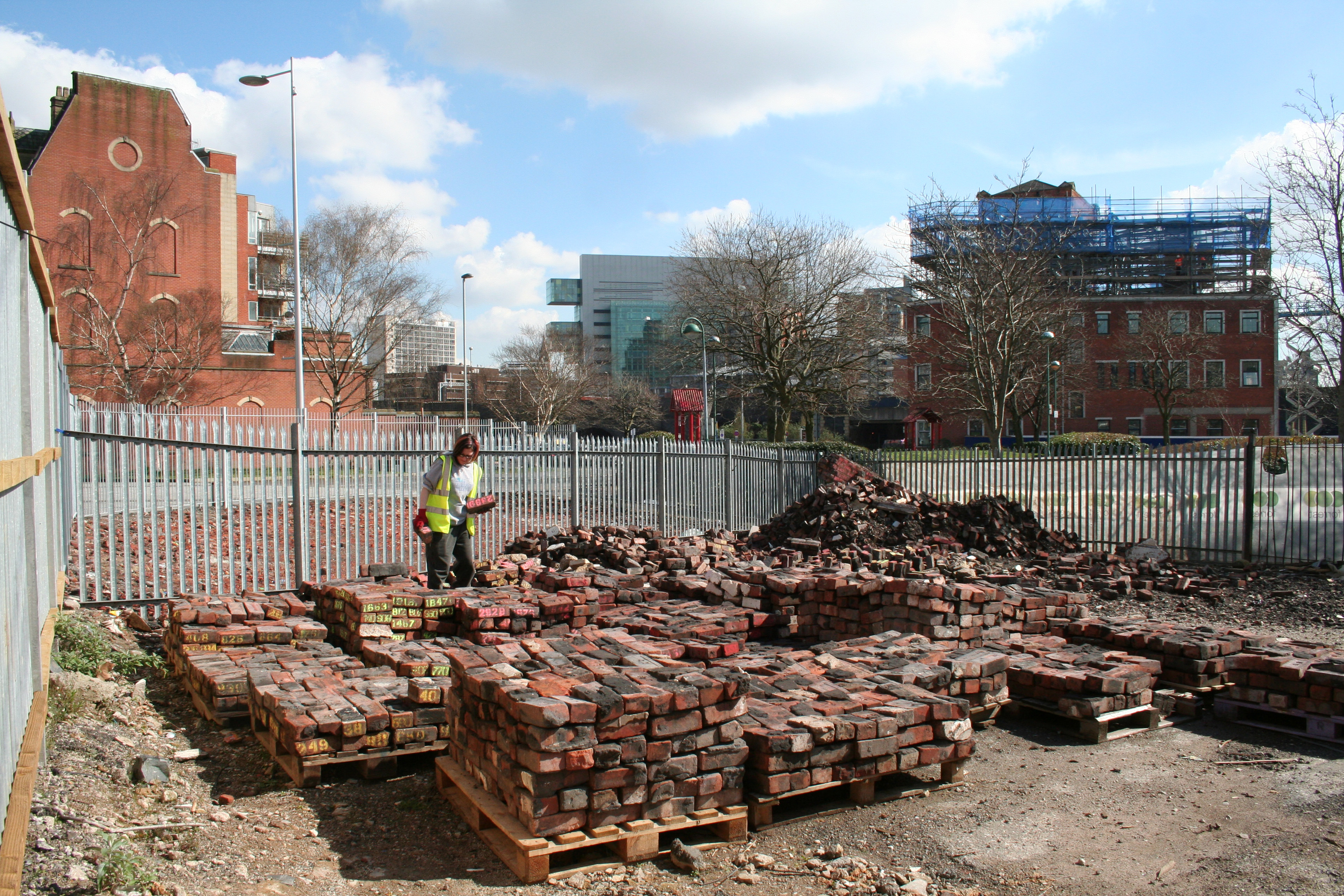 IN ORDER OF APPEARANCE: Jen Wu • Simon McCloskey • Verity Gardner • Alex Macarte • Jon Phillips • scaffolder from High Peak (sorry, should’ve written down your name!) • Barney Doodlebug • Keiron • Michael Holland • Jeff Herring & Sasha • Maurice Carlin & Joanne McNeil • High Peak scaffolders • Tom (working on Vimto Gardens) • Liam Howard • Jo Smartie • demolition contractors Bagnall UK – John Maylett, Mark Norton, Martin Dawe, Anthony Maylett, Dave • bricks transported by Chartrange • Robert Hope (Expert Home Extensions) • Marlene Ribeiro • Joe Talbot Fox Kelly • Amy Horgan • Pam Van Damned • Gary Evans (Forrest) • Mo Arshad (Shalimars) • The Niallist, Pam & Joe Spencer • Robert (Frank O’Gara) • the stones from the Old Bank Theatre facade arrive • Easter…. Bring on the resurrection.
